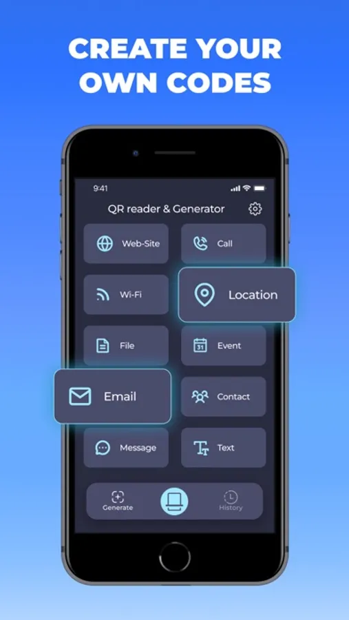 But this is more than just a barcode reader. It also allows you to create your own QR codes right on your mobile device. You can create codes for links, email addresses, contacts, files, and more, all with just a few taps of your finger. And if you want to add a little personality to your code, you can even embed it in a sticker, emoji, or photo.