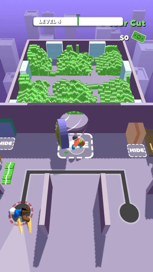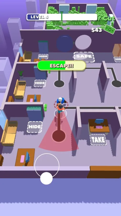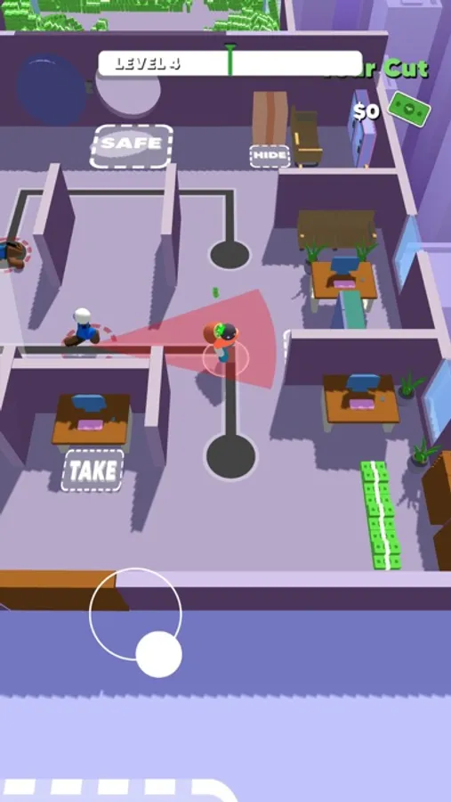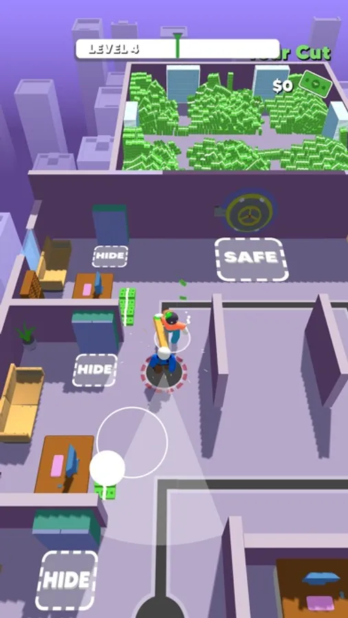 Are you up for the job? Plan your heist strategically. Execute it perfectly. Eliminate or hide from the guards. Take as much money as you can and be rich the easy way.