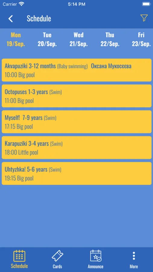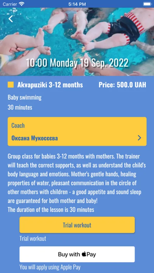 Registration in the club, viewing the schedule and season tickets, signing up for training.