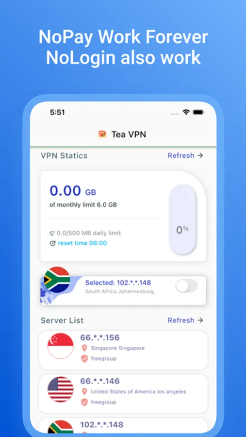 △ Support [Apple SignIn] and Email Registration. Login user will get 1.0GB per month vpn traffic FOREVER.