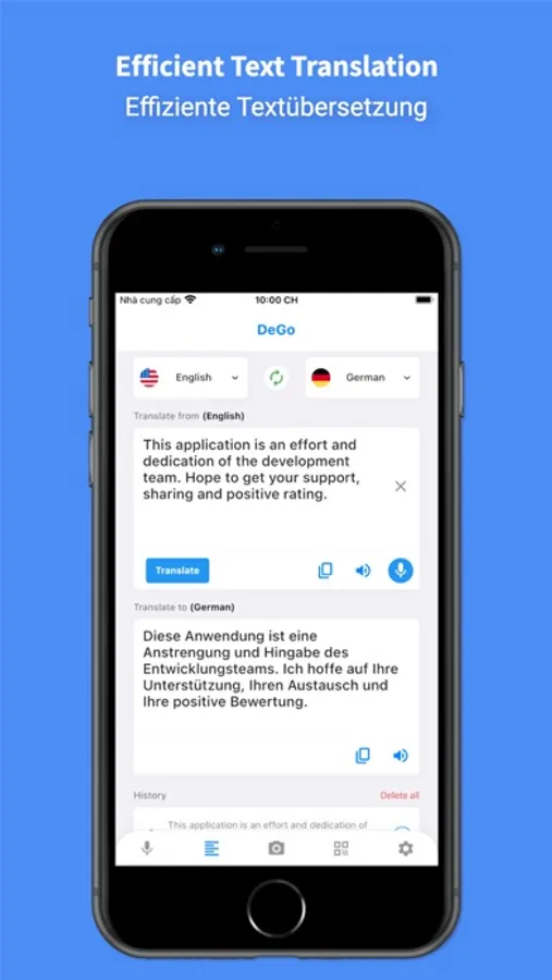 Hi ! DeGo is the leading German Translator with a lot of outstanding features such as accurate voice translator, translate any text in 45 languages to german or german to any language such as: English, Spanish, Arabic, Italian, French, Portuguese, etc and extremely useful photo translating feature or learning german more easily.