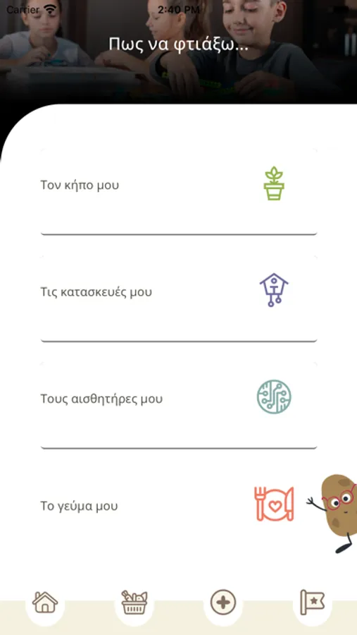 Στην εφαρμογή θα βρεις οδηγίες για να φτιάξεις τον λαχανόκηπό σου, να φυτέψεις φρούτα και λαχανικά, να φτιάξεις αισθητήρες μέτρησης υγρασίας εδάφους, αλλά και να μαγειρέψεις νόστιμα και υγιεινά γεύματα.