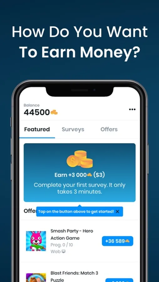 2. Select an offer and play a game or take a survey
