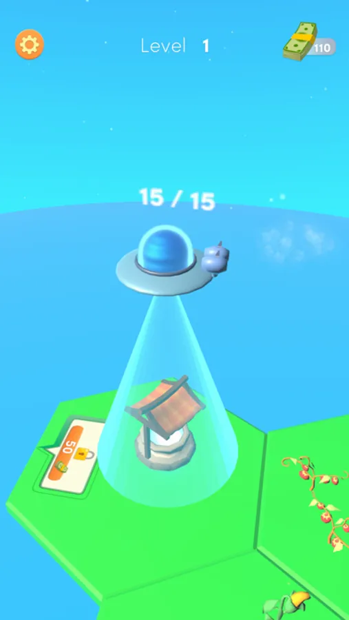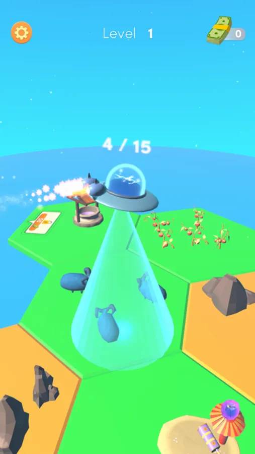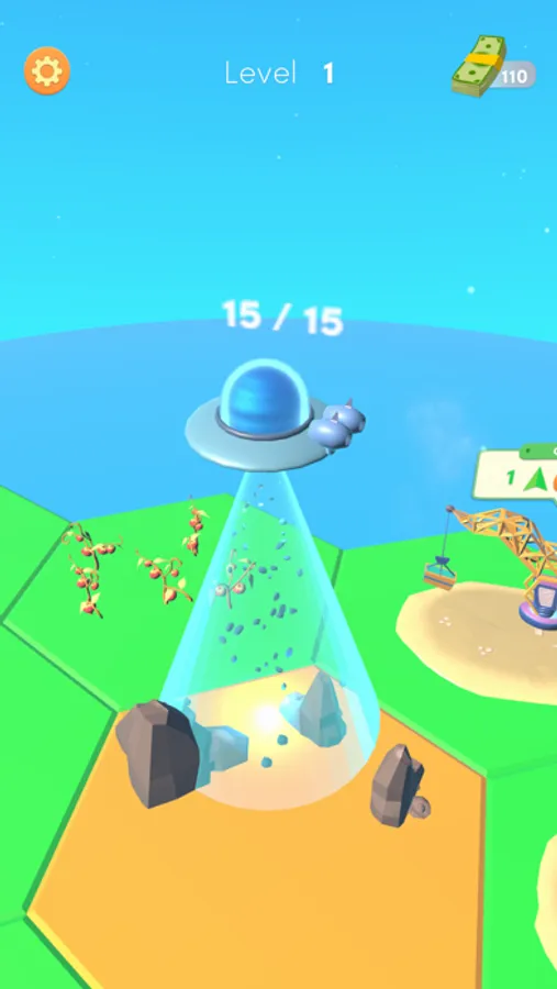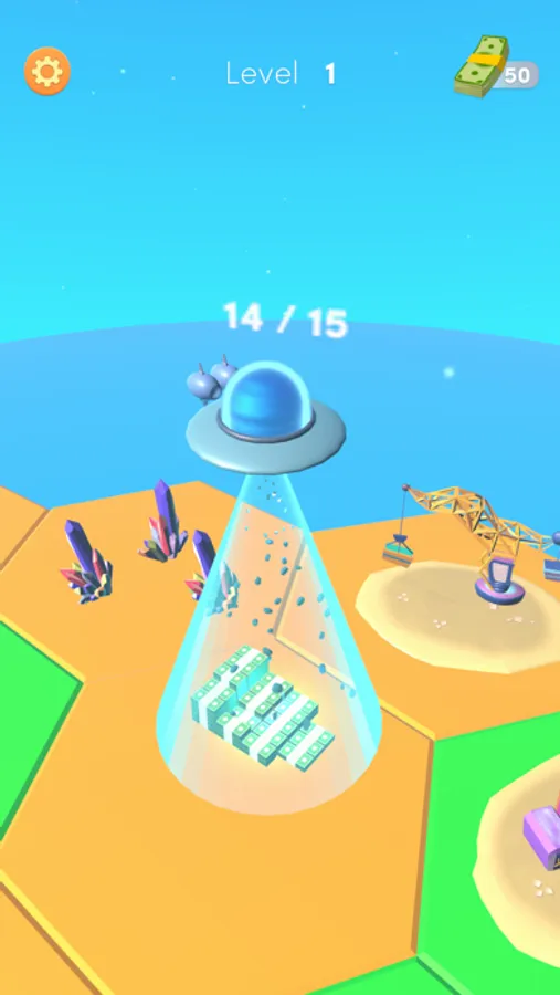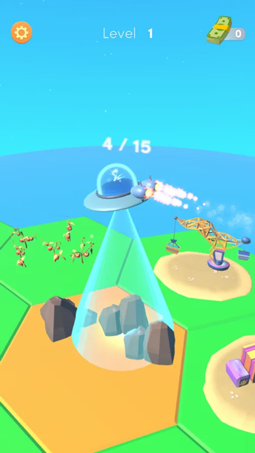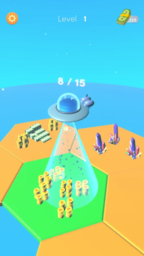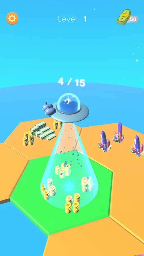 Collect everything on earth using the UFO, convert them into money. Upgrade and open more grids.