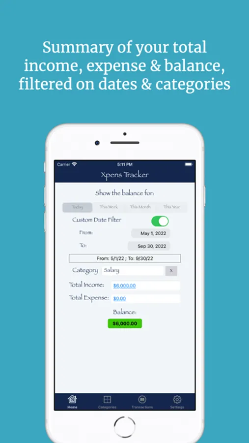 Xpens is an easy-to-use, FREE app to track your money. All you have to do is add your income and expense transactions, then you can easily filter your data on any date you want and on any category of your categories to see a summary of your total income, total expense, and balance.