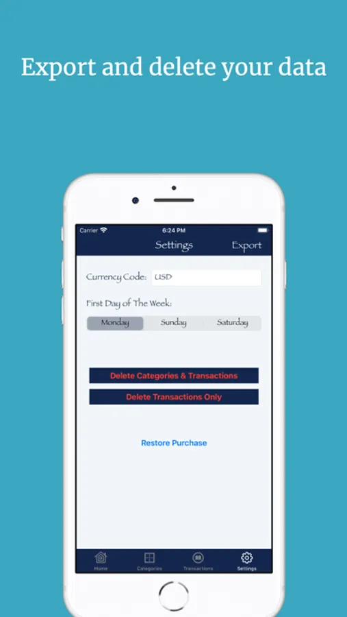 - You can either delete all your data (categories and transactions), or delete your transactions only and keep your categories.