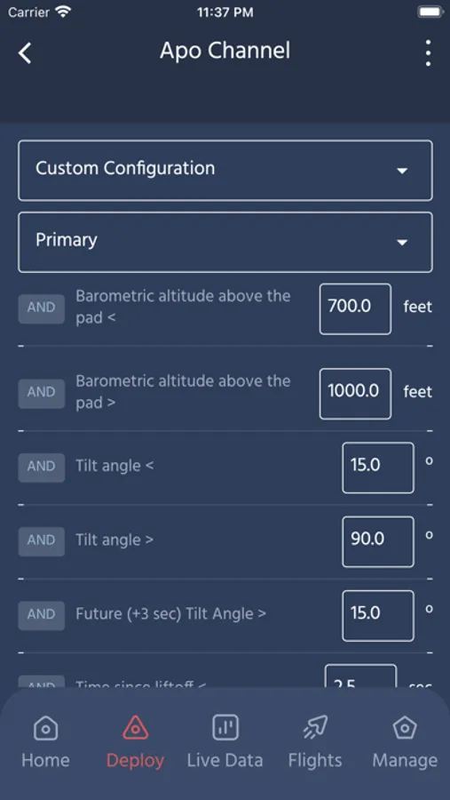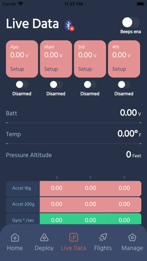 The Featherweight Interface app connects any of your Bluetooth-enabled Featherweight Altimeters products to your phone. For the Blue Raven flight computer, use your phone to see live sensor data, set up deployment conditions, download and review recorded flight data, and more!
