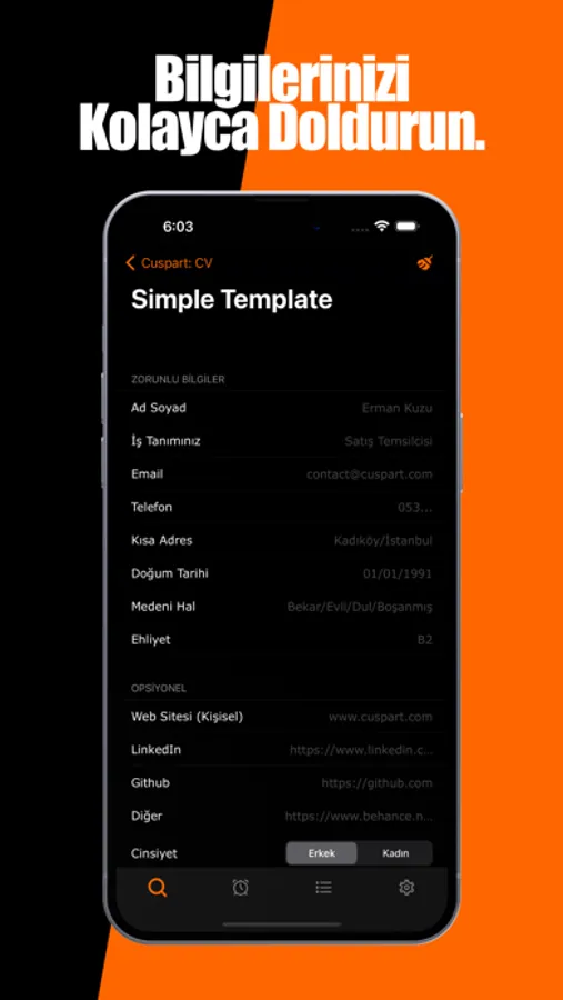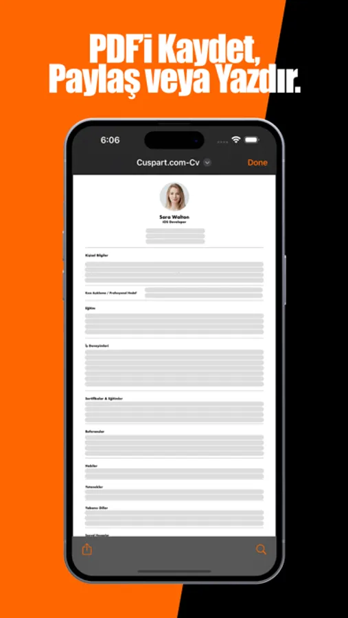 • Hazırladığınız özgeçmişi istediğiniz kişiye WhatsApp, e-posta vb. yoluyla gönderebilirsiniz.