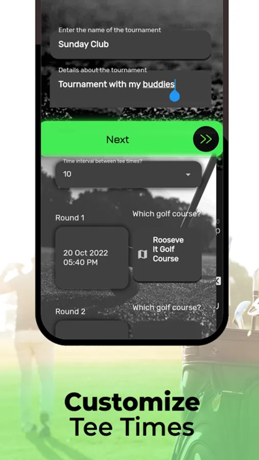 - create, and customize tournaments and tee times