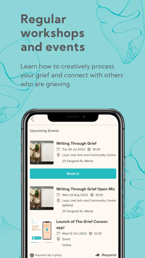 Find out about upcoming online and in-person workshops and events where you can learn how to creatively process your grief and connect with others.