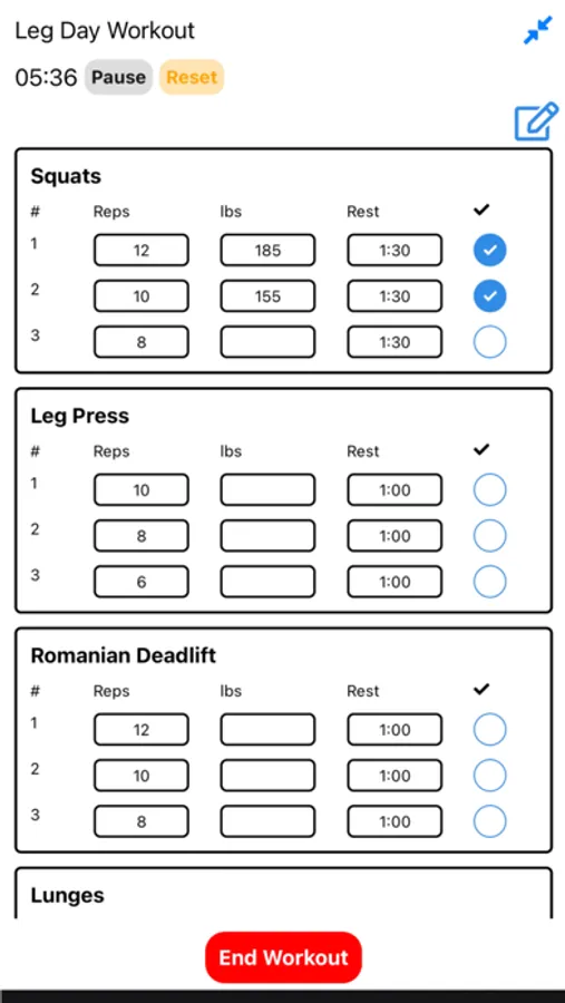 - Add sets, remove sets, add exercises, remove exercises, rename workouts, change order of exercises, etc
