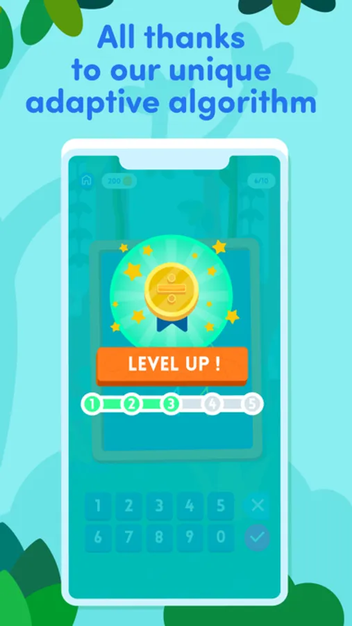 With a dynamic progression algorithm built-in, children are guided through increasing difficulty levels as they play, helping them to achieve their full potential. Plus, with a fun motivation system that rewards children with coins to upgrade and play with their jungle avatar, kids will be motivated to keep playing and practicing their math skills.