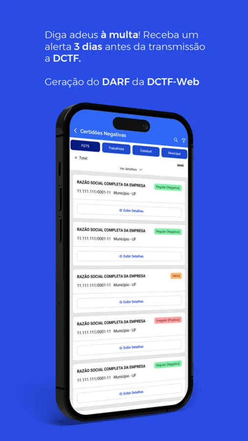 - Cobertura total das certidões, sendo possível gerar e encaminhar.