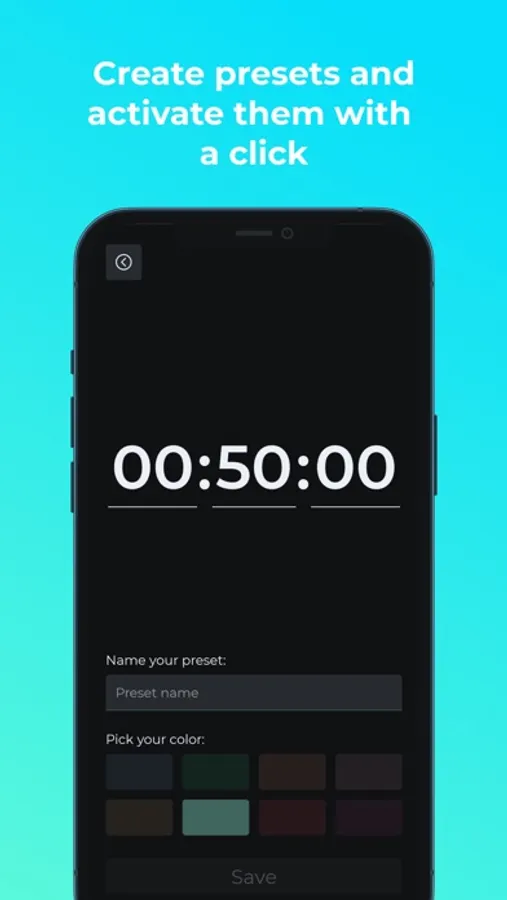 With Timese you can enjoy a minimalist timer as well as a complete one. Add the time you want with the quick action buttons and click on the clock to start the countdown. Or create presets in two easy steps and activate them when you need them just by tapping the setting you want.