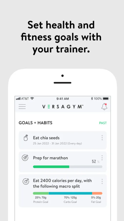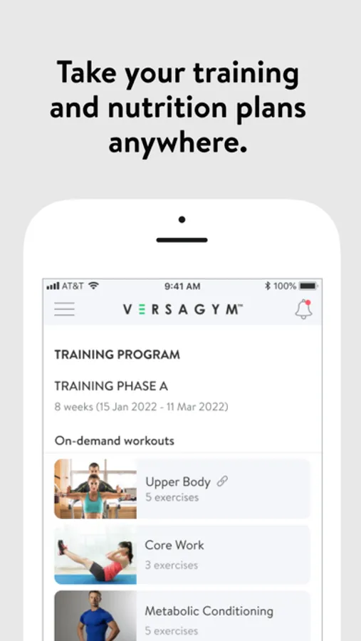 With the VERSAGYM App, you will have access to workout programs designed specifically to help you reach your fitness and health goals! You can follow & track your workouts, your nutrition, your lifestyle habits, measurements and results–all with the help of your coach.