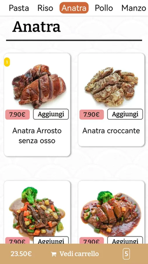 L’anatra arrosto viene preparata col “cramming duck” allevata in Ungheria, marinata con la ricetta