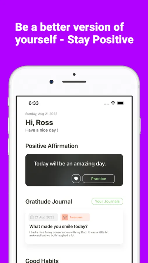 It basically works with some proven activities like Gratitude Journal, Positive Affirmations, Positive News, and some Good Habits to shift your mindset to a brighter side of the world. We only want our users to spend just 5 - 10 minutes a day on this app to change their mindset toward the positivity in their life.