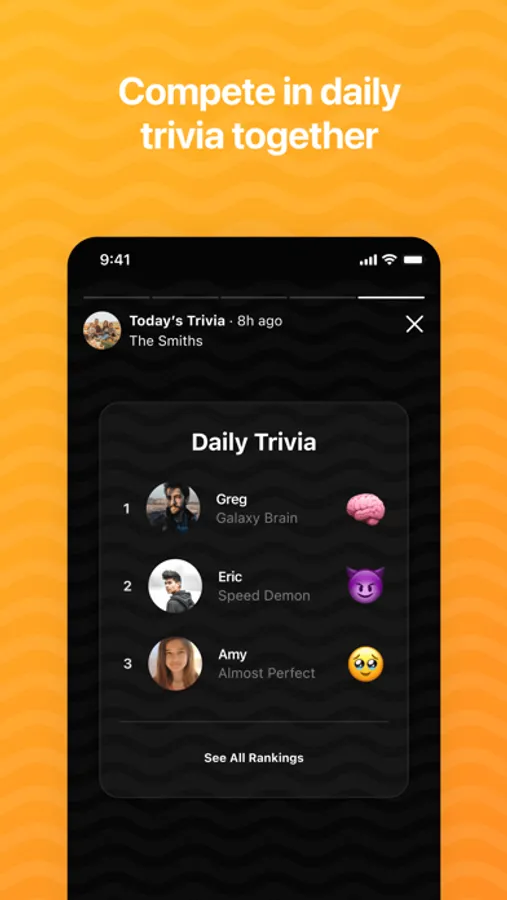 ∙ Feel Together: Start a Roll Call to see what everyone's up to in the moment, or play Trivia and compare results