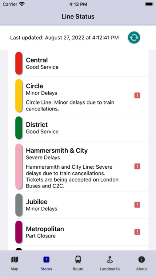 - Line status information, keep up-to-date with line closures and incidents for each of the lines.