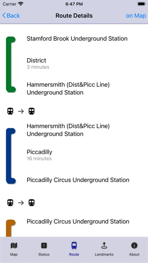 - Both landmarks and (search for nearest) stations displayed on the map and can be routed to and from
