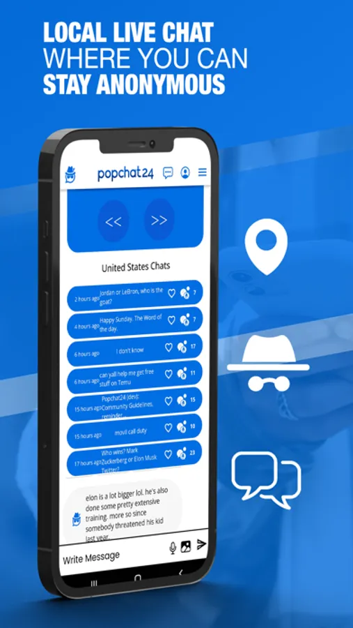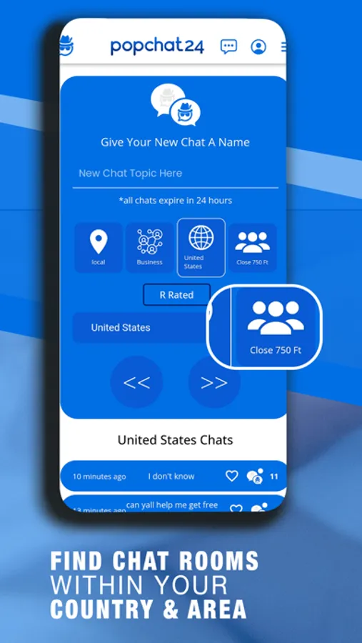 PopChat24 makes life more exciting by allowing you to discuss anything anonymously in live local chat rooms on any topic. Dull and uneventful times are going to history when you tap that download button.