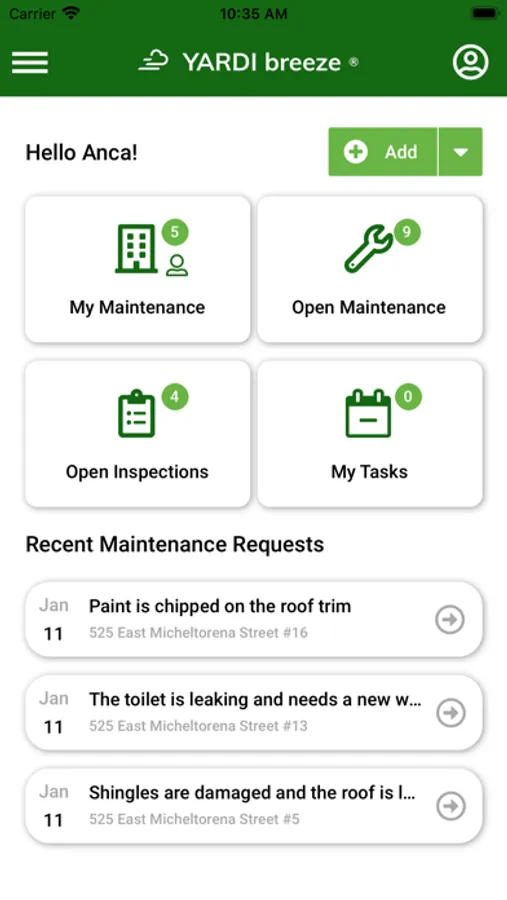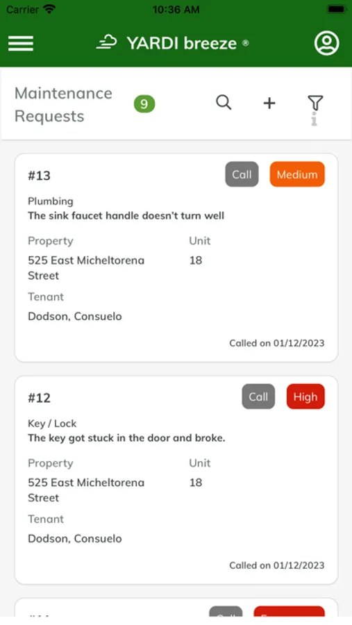 The Yardi Breeze App gives clients a quick and easy way to track property maintenance work on their phone. With the app, you can: