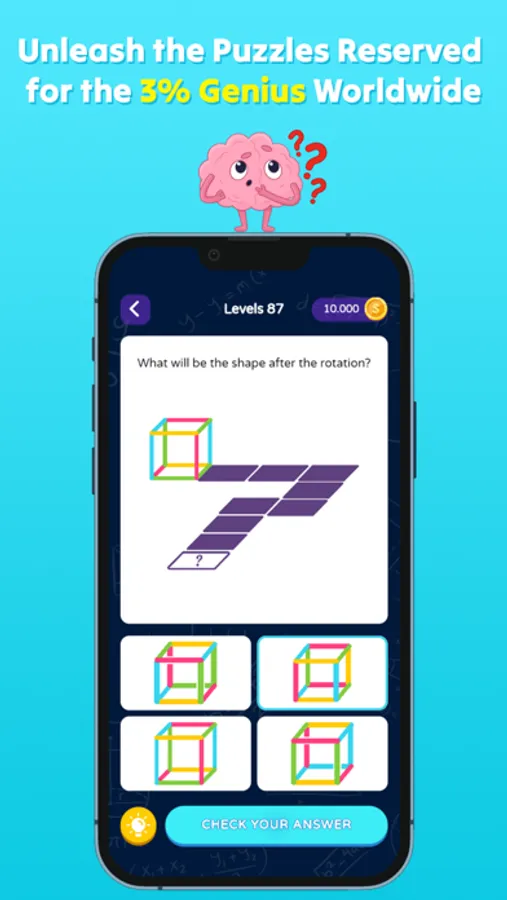 Math Puzzles And Brain Teasers (Brain IQ) is a free educational game that offers a wide range of math riddles, logical puzzles, IQ tests, brain games, and geometrical shapes that are suitable for adults and kids. This game has cognitive riddles that challenge your analytical thinking, logic skills, and perception abilities. It's a great way to develop brain cells, attention, and memory power, while also practicing stress control.
