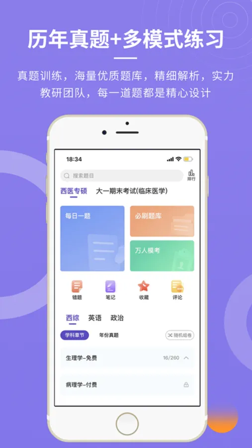 忠保医学APP是由北京忠保医学教育科技有限公司开发打造的针对医学生及医生的考试和学习平台。涵盖了医学考研、执业医师、执业助理医师、中医考研、中医执业医师、中医助理执业医师、护理考研、护士资格考试、执业护师、药学考研、执业药师、公卫考研、公卫执业医师、公卫助理执业医师、口腔考研、口腔执业医师、口腔助理执业医师、主治医师考试(中级职称考试)、副主任医师考试(副高级职称考试)、主任医师考试(高级职称考试)、规培考试、医技考试、医学三基考试、医师定期考核、医疗卫生招聘考试、医学本科期末考试、健康管理师等数百种医学考试真题题库。除题库外,本应用还开发了首页、刷题、学习、宝圈、我的等模块,功能强大、匠心汇聚,为医考学生提供高质、高效的学习、交流平台!