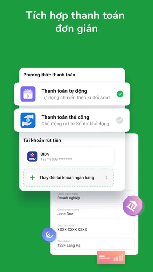 Xem lại lịch sử giao dịch theo thời gian, kênh thanh toán, mã giao dịch và nhận thông báo khi có giao dịch xảy ra ngay trên thiết bị di động của bạn.