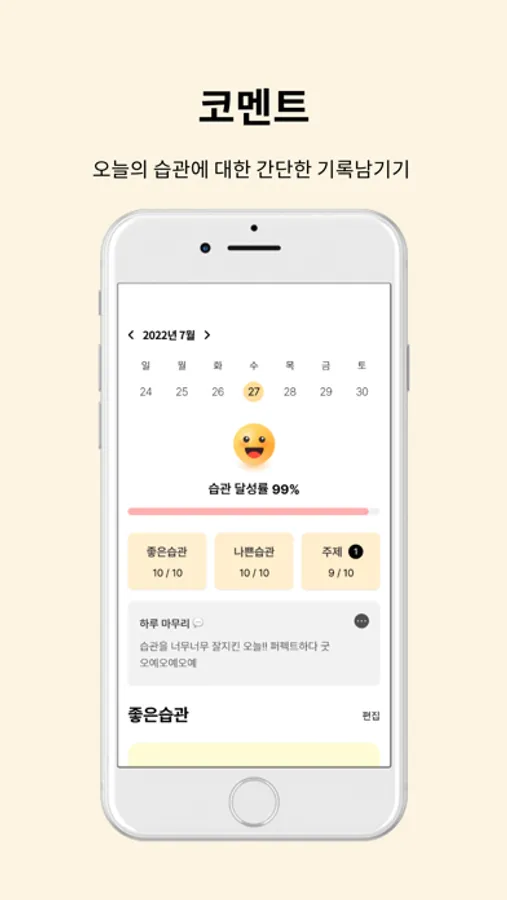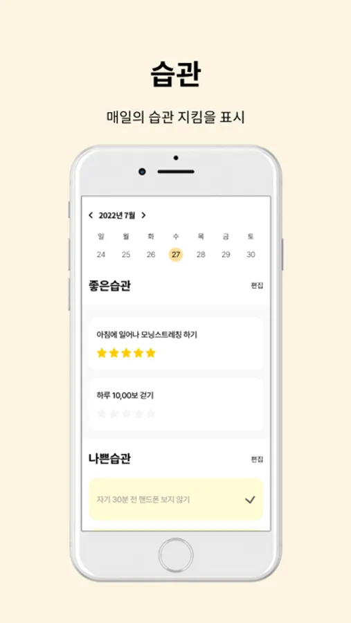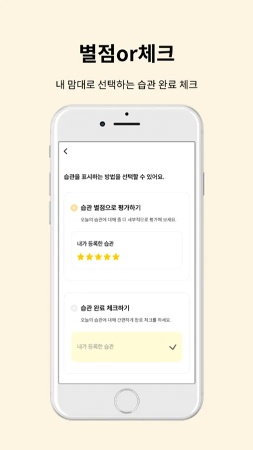 습관 달성 시 별점평가 혹은 완료체크로 달성을 관리