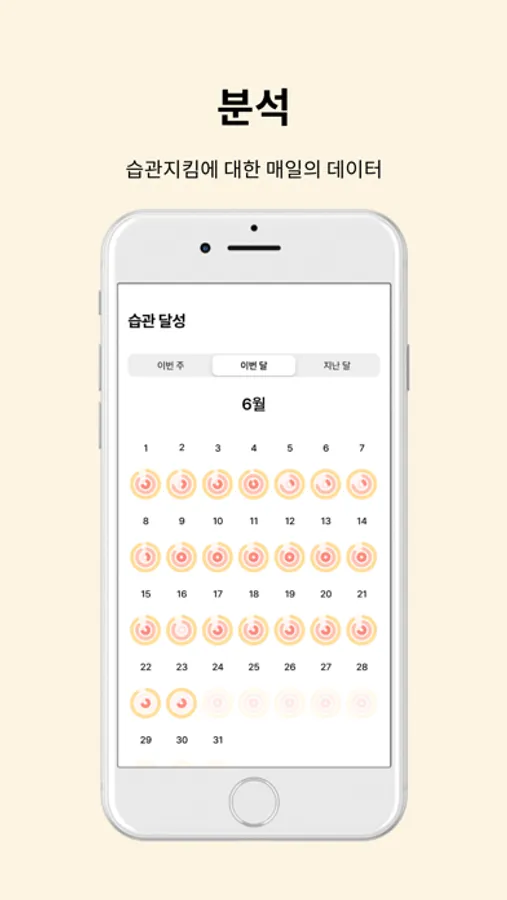 이번주/이번달/지난달 등 분석을 통해 습관을 한눈에 확인