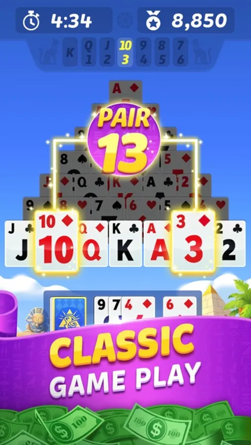 Pyramid Solitaire Cash Game is not only a classic pyramid card game, but also a place where you can show skills and earn REAL MONEY to get rich.