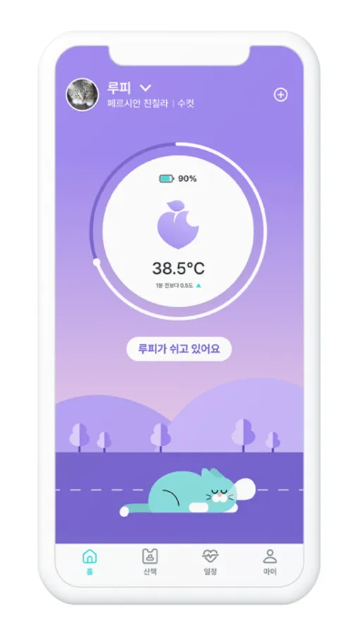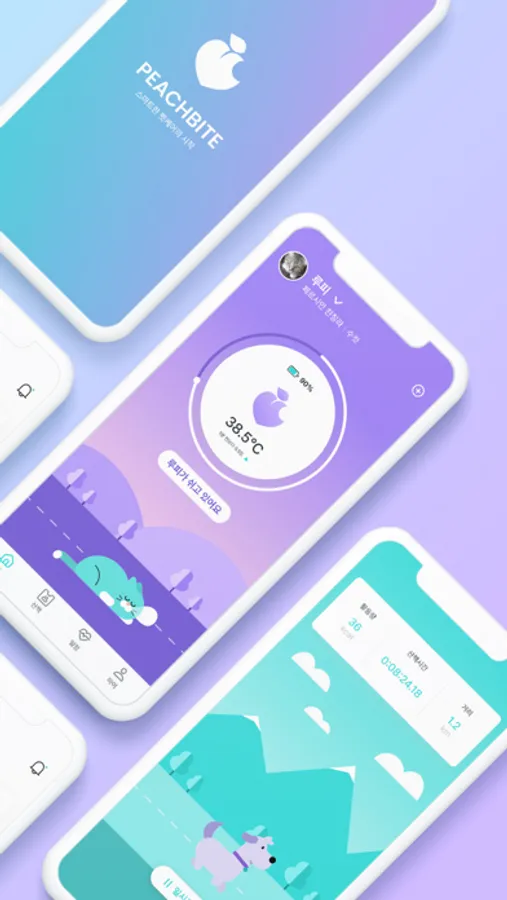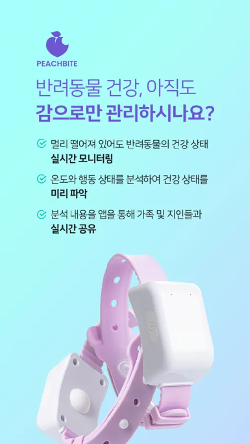 피치바잇은 디바이스의 온도센서와 동작센서를 활용하여 반려동물의 건강을 분석합니다.