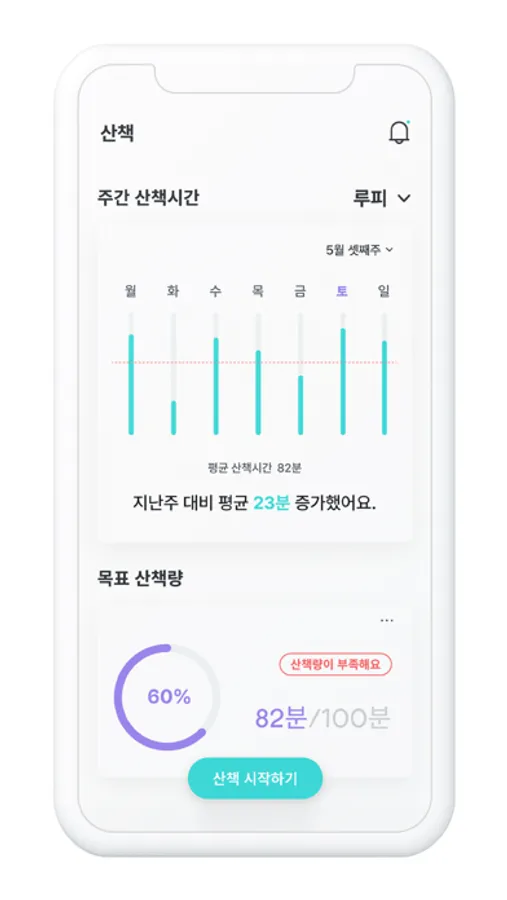 보다 체계적으로 관리할 수 있는 목표 산책량 설정은 덤!