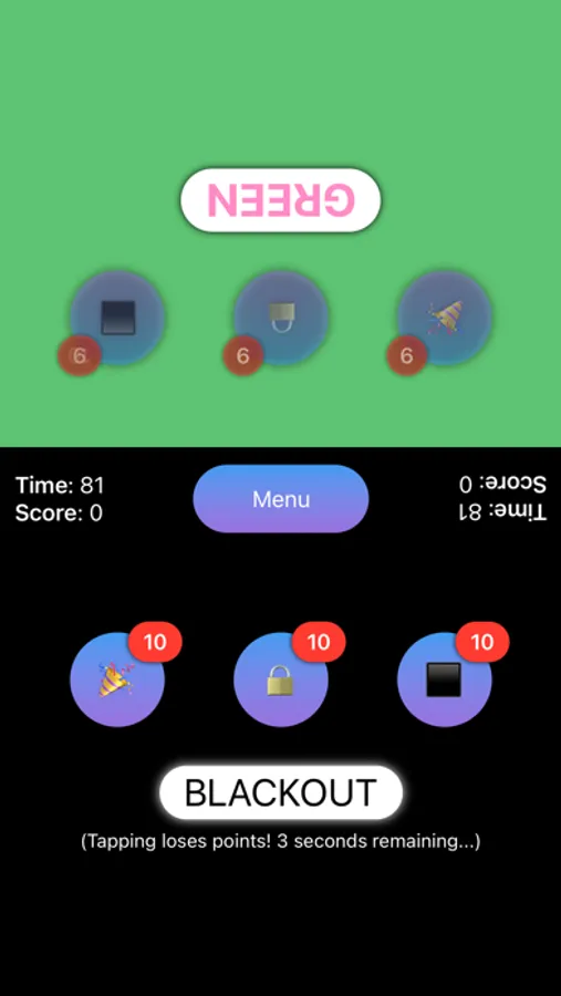 - Blackout: Changes your opponent's background color to black making it impossible to match colors. Taps during a Blackout lose points!