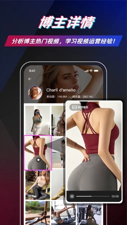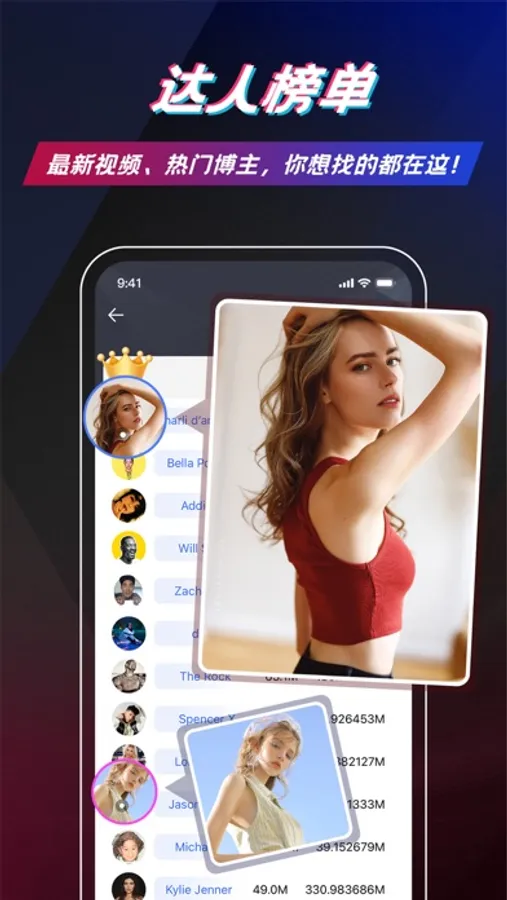 2、通过热门博主查看榜单,获悉人们喜欢的博主红人,掌握流量的密码!学习模仿网红达人,快速制作爆量短视频!让您快速拥有海外短视频的极佳嗅觉与网感.