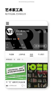 首页:商城展示,以大艺博艺术家作品为基础,融合“艺术之内,生活之中”的艺趣万物。