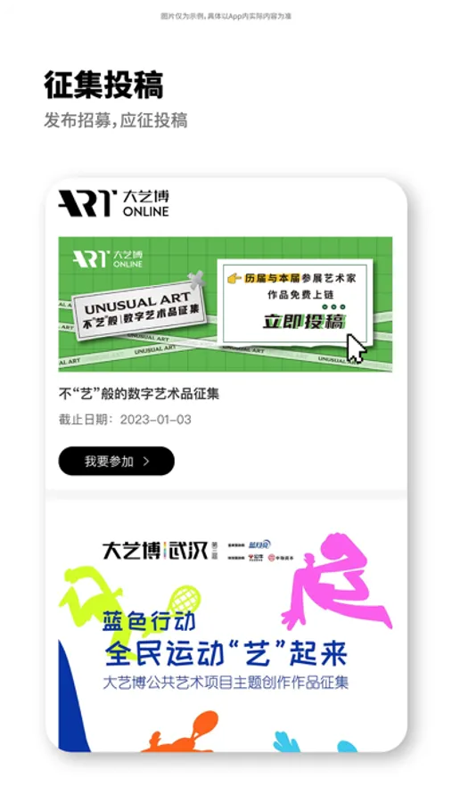 投稿:艺术家/创作者展示原创内容的途径。