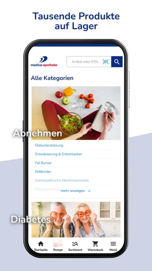 Die Medica Apotheke Kiel für die Hosentasche: (E-)Rezepte und Medikamente einfach online bestellen.