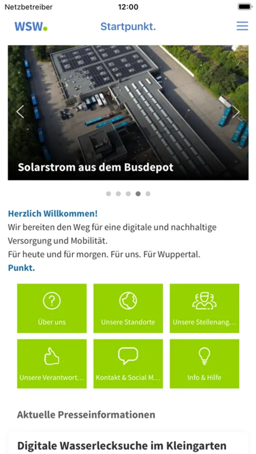 Klasse! Dann laden Sie sich unsere App "WSW Punkt." herunter. In der App finden Sie gebündelte Informationen, Einblicke hinter die Kulissen, Wissenswertes aus dem Unternehmen und Neuigkeiten über aktuelle Entwicklungen, strategische Schwerpunkt-Themen und Veranstaltungen der WSW. Für Mitarbeiterinnen und Mitarbeiter gibt es einen exklusiven Zugang zu wichtigen Informationen aus ihren Bereichen sowie Tipps rund um ihren Arbeitsalltag oder den aktuellen Speiseplan.