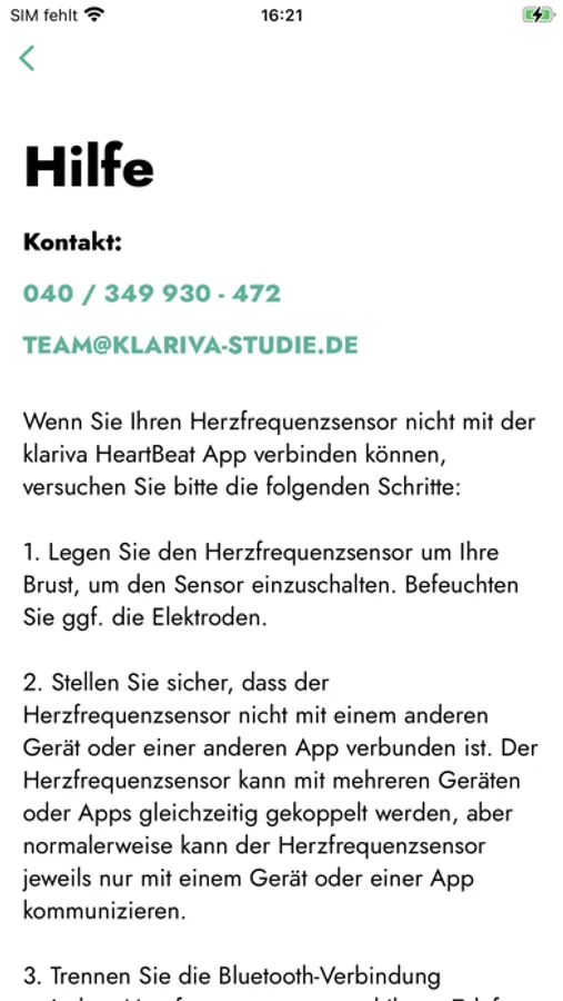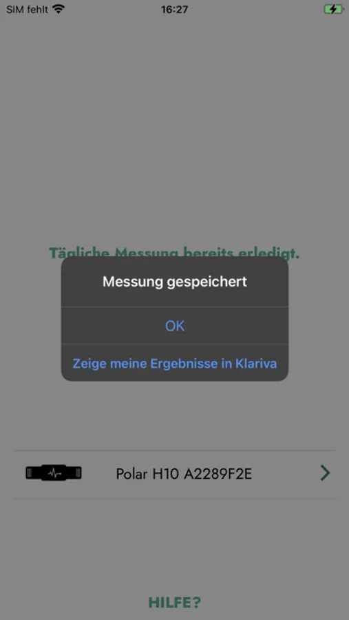 Die App dient zur Messung und Analyse der Herzratenvariabilität (HRV) und ist eine Ergänzung zu Klariva. Es wird ein kompatibler Herzratensensor benötigt (empfohlen: Polar H10).