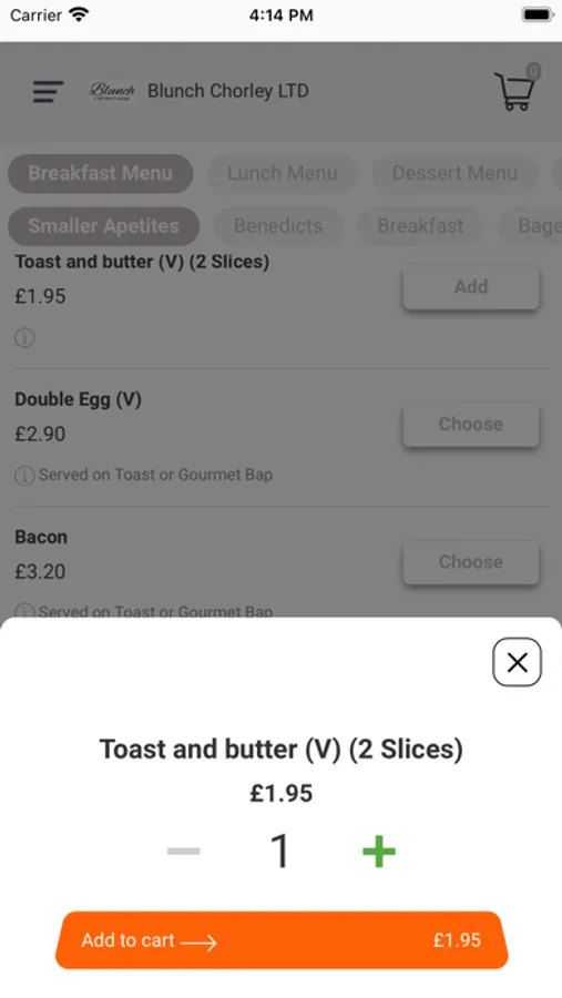 Order your blunch chorley takeaway via our app!