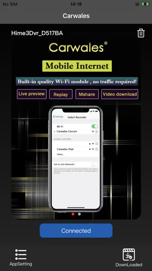 Carwales APP is a control software of hd dashcam, which supports the operation of preview, playback and download of pictures and videos in the dashcam through WIFI direct connection.
