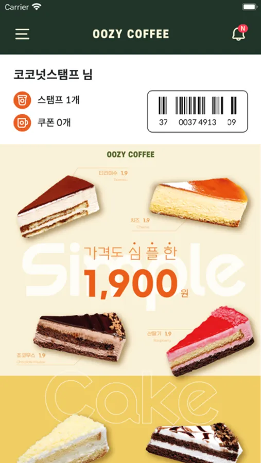 적립과 쿠폰, 오더 시스템 등 확인하실 수 있습니다.