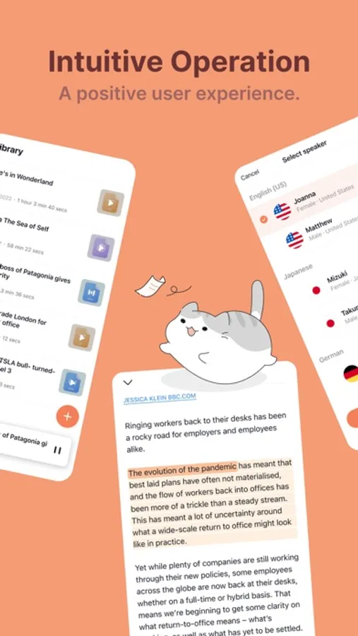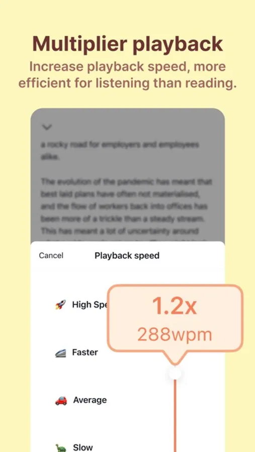- Multiplier playback: Increase playback speed, more efficient for listening than reading.