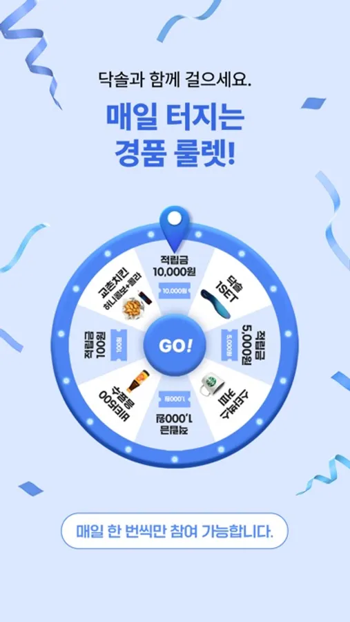 - 하루 한번 출석체크 룰렛을 통해 치킨, 스타벅스 커피와 같은 경품과 적립금을 받을 수 있어요.