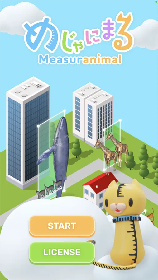 めじゃにまるは動物や人を使って長さや面積、体積を視覚的に計測するためのエンターテイメントツールです。