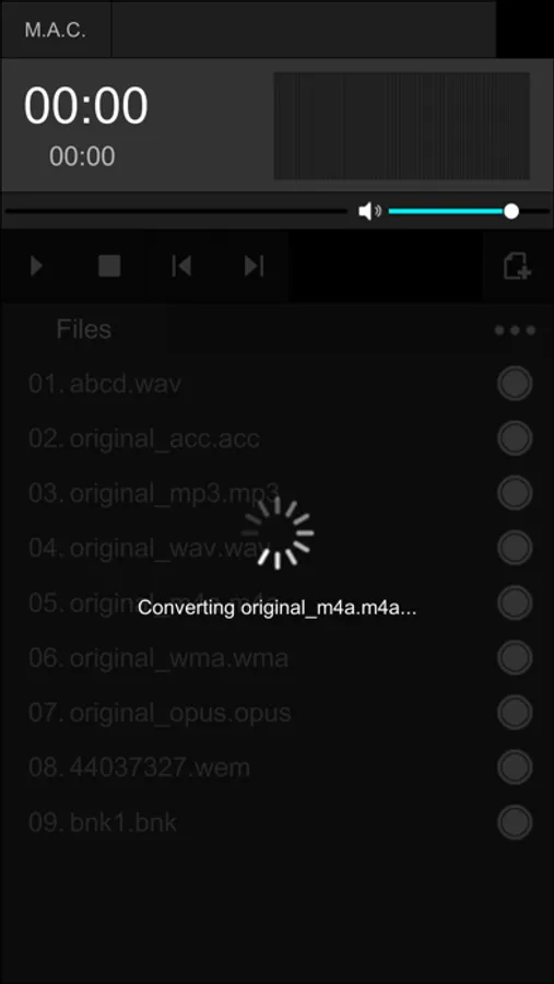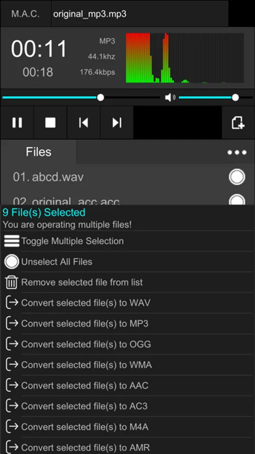 Supported Convert to Audio Formats : OGG MP3 WAV WMA ACC AC3 M4A AMR OPUS AIFF FLAC WEM etc.