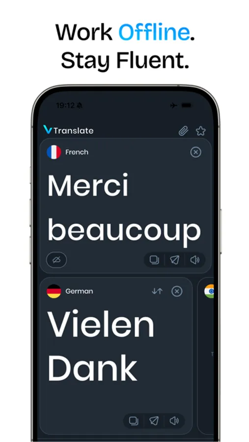・Unlike traditional translators showing one language at a time, VTranslate displays multiple translation cards you can swipe through.