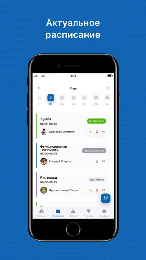 Записаться на групповые и персональные тренировки;